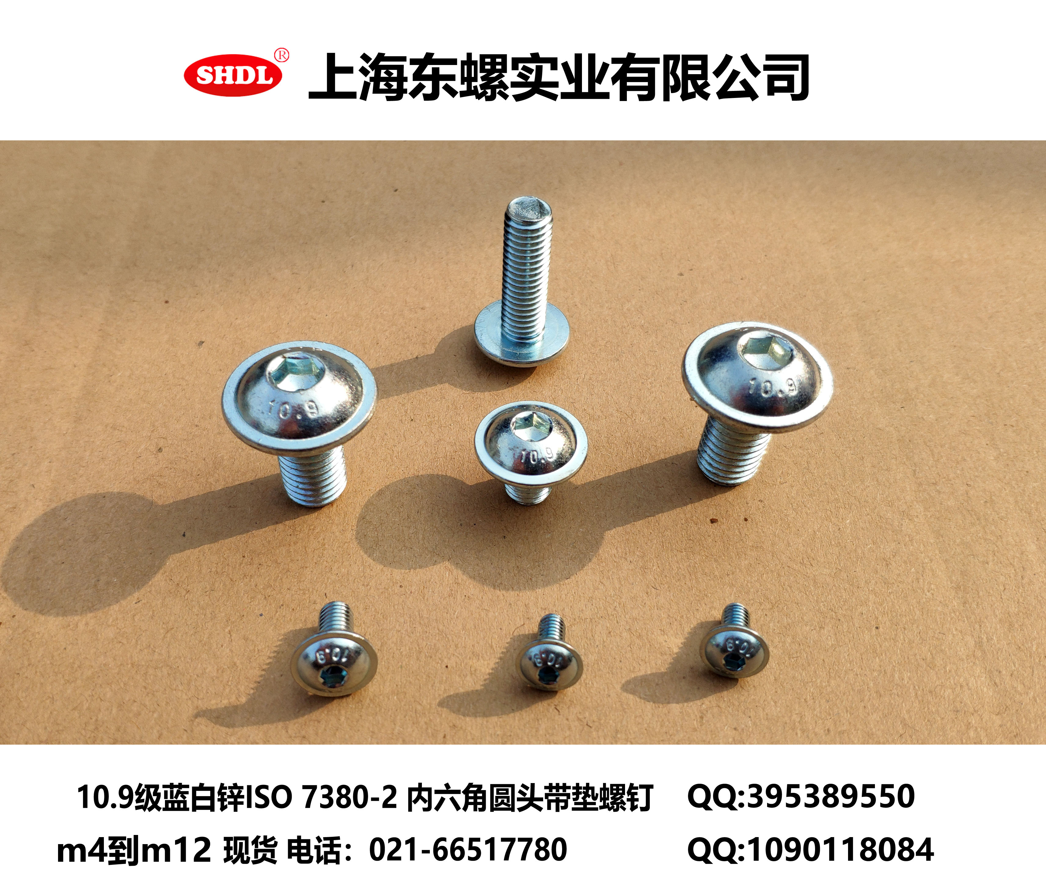 • 10.9級藍白鋅內六角圓頭帶墊螺釘 ISO 7380-2-2011現貨